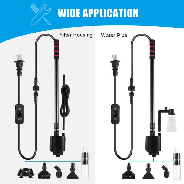3 in1 Multi-function: This fish tank siphoncleaning tool can be used for water changes, sand washing and dirt suction. No need to touch dirty water with your hands.